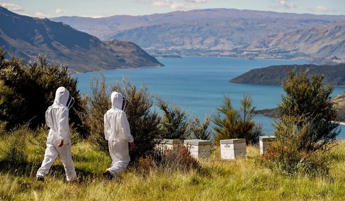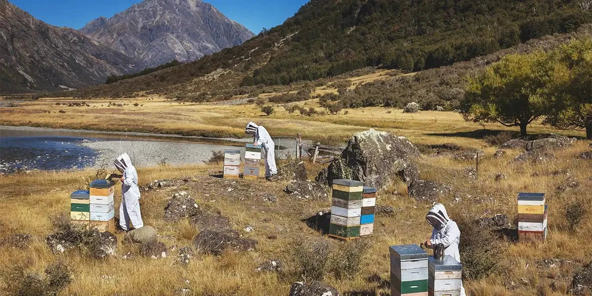 In the crisp mountain air, hidden valleys, kissed by sunlight, hum with the songs of abundant nature, and for brief periods native trees like Manuka and Rata blossom and wildflowers bloom. Here our beekeepers work in harmony with the rhythm of the environment, letting nature guide them. Through respectful partnership and the lightest of touches, they take care of the land and ensure our bees are some of the healthiest in the world.